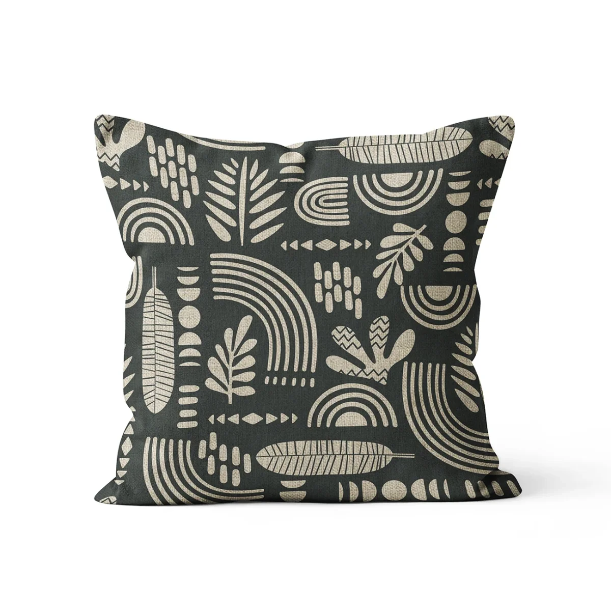 Housse de coussin scandinave graphiques noirs et beiges plante et mosaïque (45cmx45cm, 45x45cm, 40x40cm)