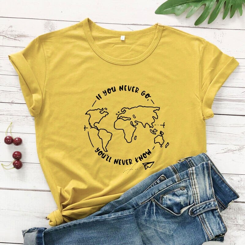 Optez pour ce Tee-shirt de voyage élégant pour Femme et affichez votre passion pour les voyages avec élégance.